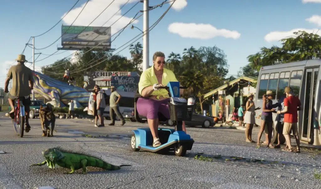 One of the biggest things GTA 6 trailer 2 shows is just how detailed the open world is. Animals are literally everywhere. You will spot iguanas, bobcats, panthers, wild hogs, foxes, raccoons, stingrays, eels, and snakes. There are also domestic animals like Rottweilers and German Shepherds walking around.