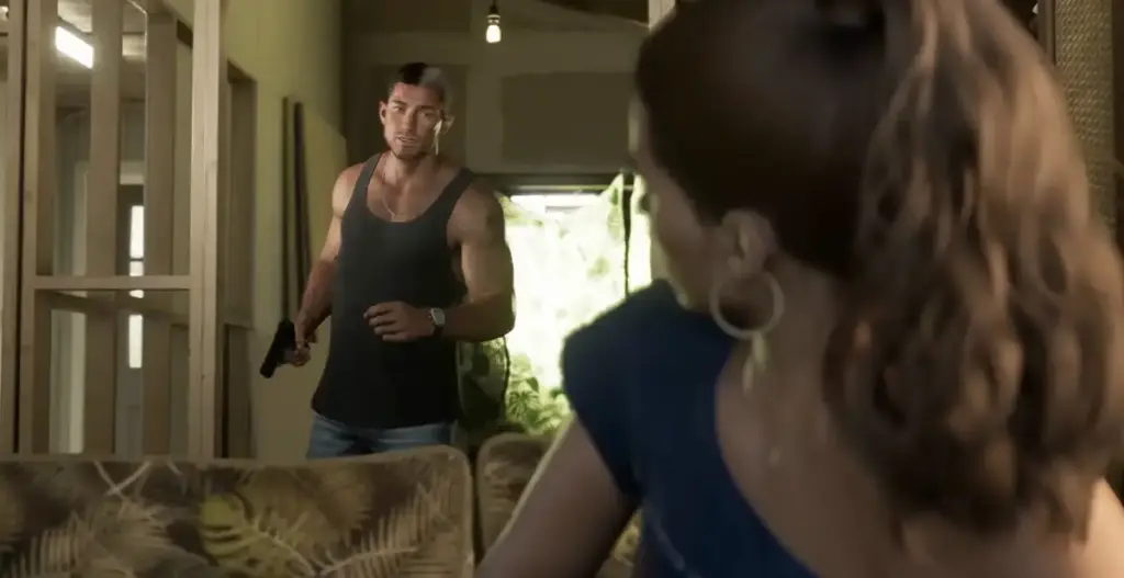 • Then there's Raul Bautista, a seasoned bank robber who pulls Jason and Lucia into high-risk heists. He's the one leading the Sinfrontera National Bank robbery you see in the trailer.