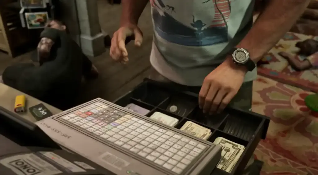 Lucia even blasts police cars with a Grenade Launcher from a damaged bus. There's also a wild scene where Jason and Lucia drag a safe behind a pickup truck.