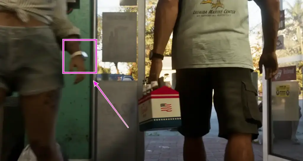 Smartwatches are now dynamic, they light up based on motion sensors and actually show the correct in-game time. One NPC's watch lights up the moment Jason walks past her.